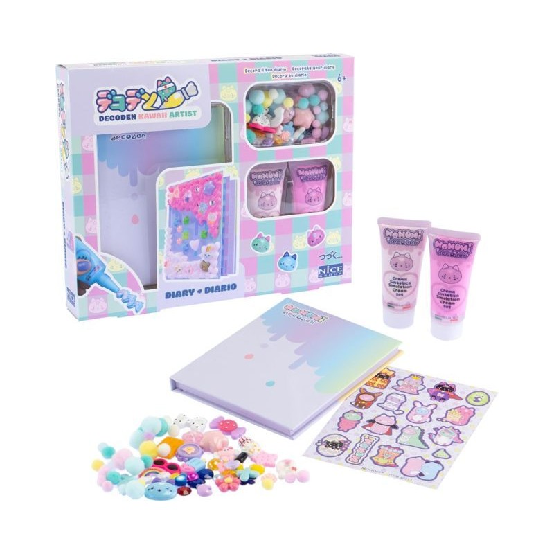MOMOMI Decoden Diary scopri il kit di decorazione artigianale in crema sintetica e decora la copertina del Diario con i charms e le perline in stile kawaii presenti nella scatola