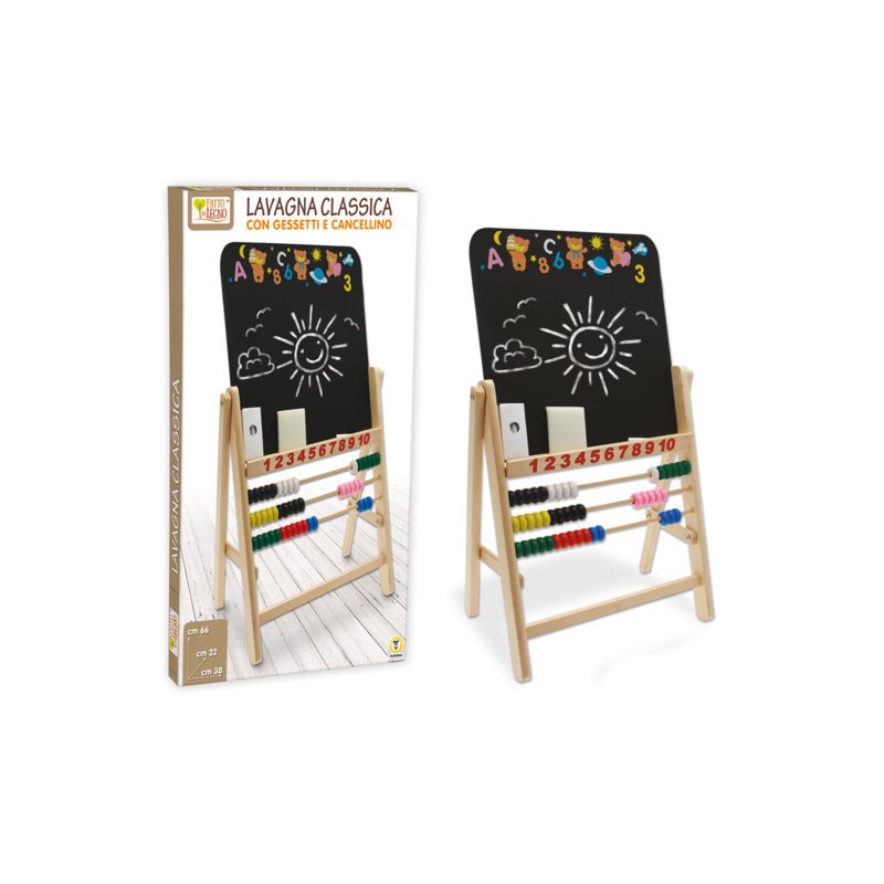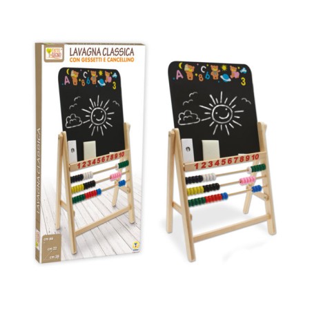 LAVAGNA IN LEGNO CON GAMBE PALLOTTOLIERE E GESSETTI