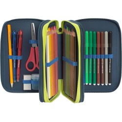 AMPIO E COMPLETO L astuccio è ampio ed è completo di tutta la cancelleria necessaria per la scuola Include 18 pennarelli 18 matite colorate matita gomma penna cancellabile blu Frixion penna rossa righello temperino con serbatoio forbici con punta arrotondata squadra ed etichette portanome