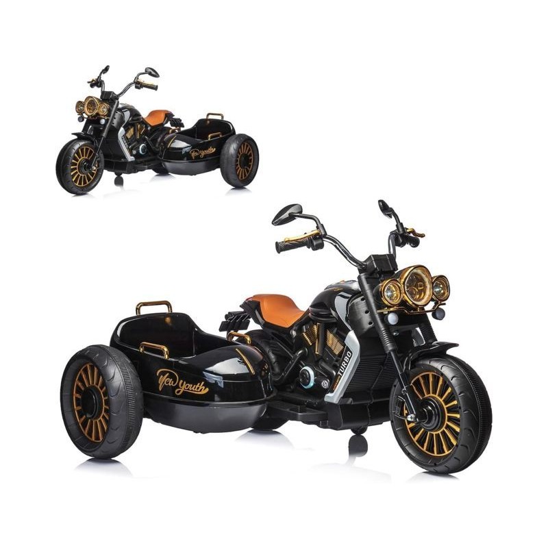 Moto elettrica con sidecar per due bambini di circa Da 3 a 8 anni