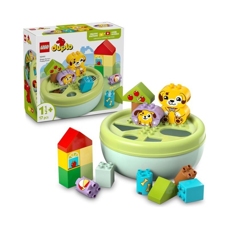 Gioco educativo per bambini da 18 mesi coltiva la passione dei piccoli in età prescolare per i cuccioli con il set di costruzioni LEGO DUPLO Smista Forme Casetta del Cucciolo e lascia che apprendano come inserire le forme nei fori corretti