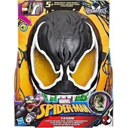 PIU' DI 10 EFFETTI SONORI E FRASI immagina di combattere contro l amichevole Spider Man di quartiere con questa maschera di Venom che si illumina al buio per bambini e bambine dotata di 7 suoni e 11 frasi attivabili premendo un pulsante