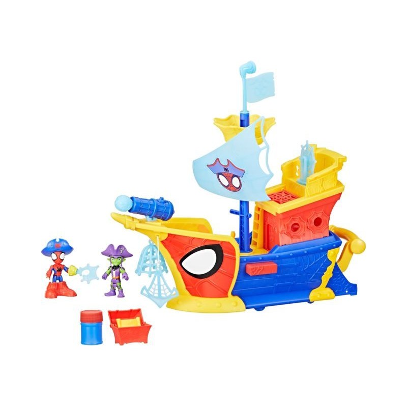 INCLUDE 2 ACTION FIGURE E ACCESSORI MARVEL la nave pirata include action figure di Spidey e Green Goblin 2 accessori cappello da pirata e 1 paio di stivali ispirati agli episodi di Water Webs della serie Spidey e i suoi fantastici amici