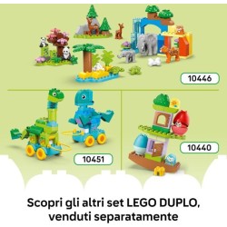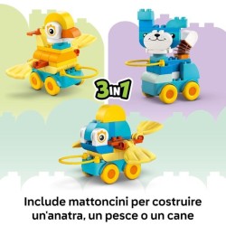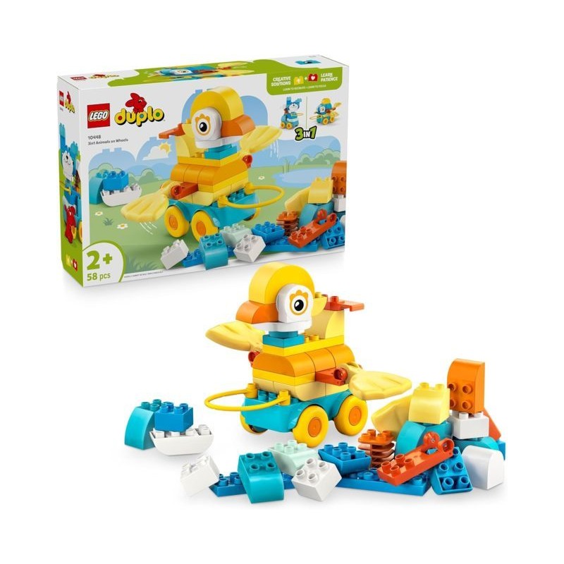 Set giocattolo Animali su Ruote 3 in 1 LEGO DUPLO Town questo gioco educativo per bambine e bambini da 2 anni in su offre ore di creatività e di colore permettendo ai piccoli di creare 1 di 3 diverse figure di animali LEGO DUPLO in mattoncini