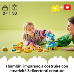 Gioco di ruolo creativo con possibilità illimitate i 58 mattoncini consentono ai piccoli in età prescolare di costruire 3 animali un anatra un cane giocattolo o un pesce oppure qualsiasi creatura che la loro immaginazione possa inventare