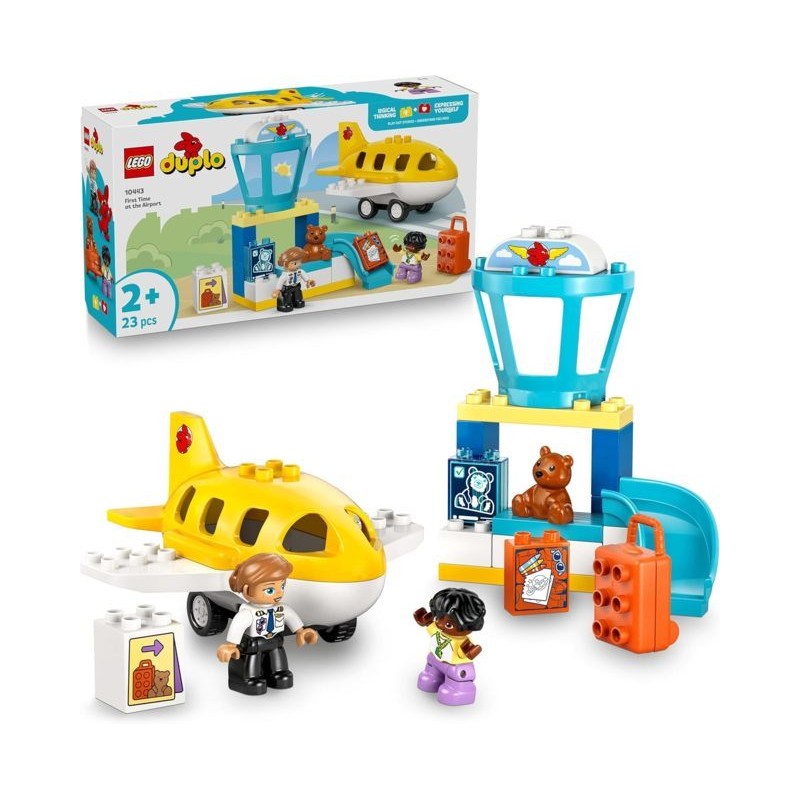 Set di costruzioni LEGO DUPLO in mattoncini il set include un aereo giocattolo con tetto rimovibile i personaggi del bambino e del pilota un orsacchiotto e una torre di controllo con cui dar vita ai giochi di ruolo dei piccoli in età prescolare