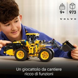 Gioco da cantiere per bambini e bambine da 9 anni in su offri ai giovani una divertente sfida di costruzione facendo loro assemblare il set Pala Gommata Volvo L120 Electric un modellino da costruire di ruspa giocattolo LEGO Technic in mattoncini