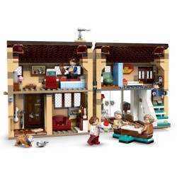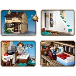 Iconica ambientazione in mattoncini la casa LEGO Harry Potter dispone di una veranda e si apre per un facile accesso alla cucina alla zona pranzo con tavolo da pranzo rimovibile al soggiorno e alle camere da letto di Dudley e di Harry