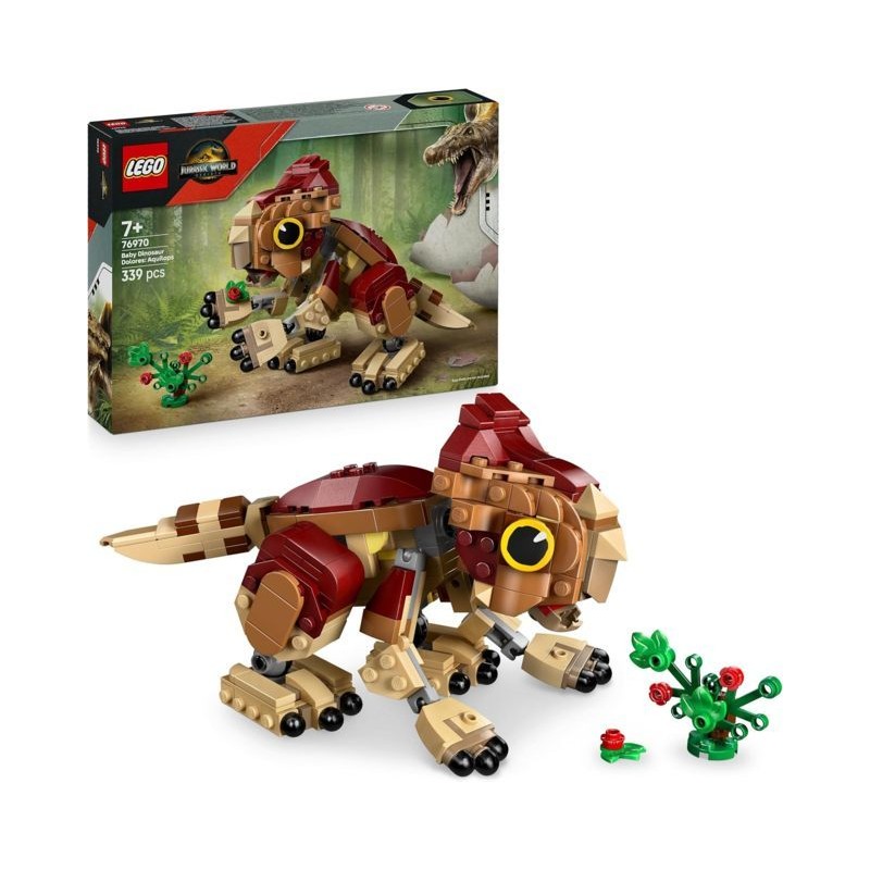 Set con cucciolo di dinosauro giocattolo include un modello di cucciolo di Aquilops ispirato al film Jurassic World La Rinascita oltre a una pianta di fiori LEGO costruibile in mattoncini per dar vita a giochi creativi e a storie divertenti