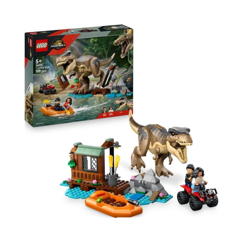 Set con dinosauro LEGO Jurassic World il set Fuga sul Fiume dal T Rex giocattolo è un divertente gioco creativo per bambini e bambine da 5 anni in su ricco d azione che comprende un dinosauro giocattolo un gommone e un veicolo ATV da costruire