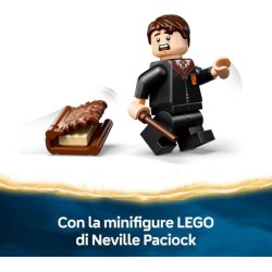 Personaggio di Harry Potter esponi il libro costruibile con la minifigure LEGO di Neville Paciock che tiene in mano il piccolo Libro Mostro dei mostri accessorio