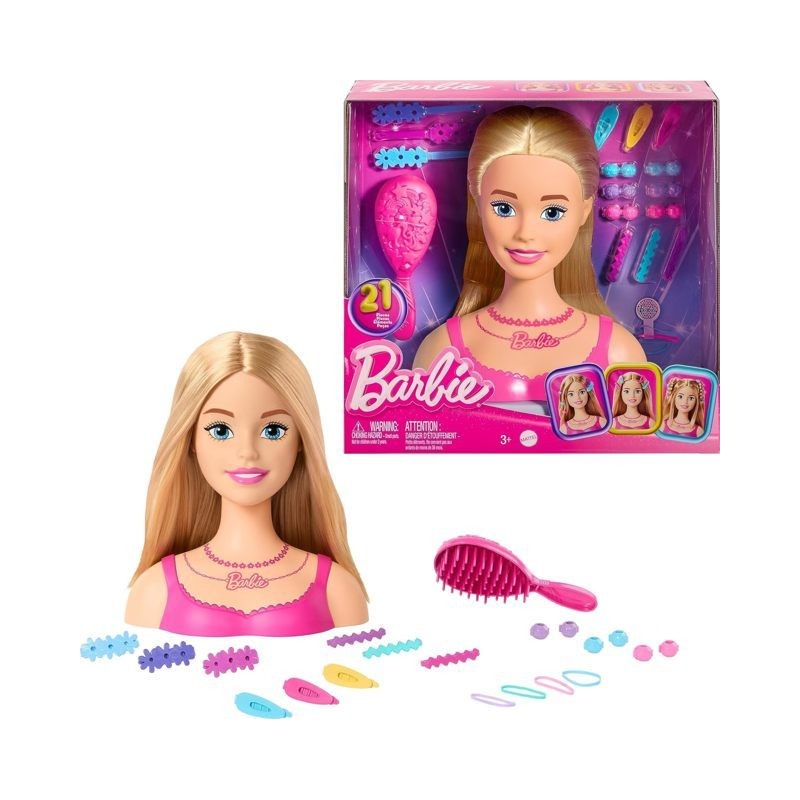 Ispira la creatività con questa testa di Barbie Doll Styling Ore di divertimento per lo styling dei capelli e innumerevoli look ti aspettano quando i bambini usano la loro immaginazione con i 20 accessori inclusi