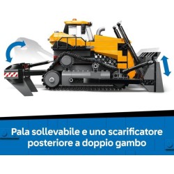 Bulldozer giocattolo LEGO City da costruire prepara i giovani fan dei cantieri a costruire la propria città con il set del Bulldozer Giallo un appassionante gioco di ruolo per bambini e bambine da 8 anni in su
