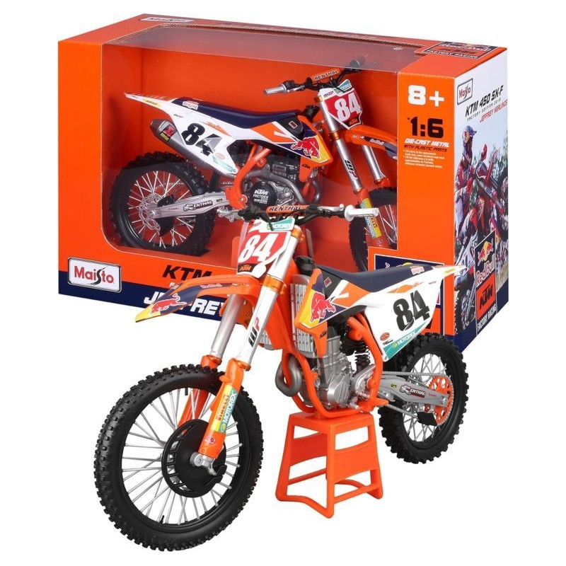 KTM SUPERCROSS SX450 RED BULL 84 Replica ufficiale della moto Red Bull KTM 450 SX F guidata da Jeffrey Herlings nel 2018 in scala 1 6 In metallo con parti in plastica presenta dettagli autentici e livrea ufficiale Red Bull KTM Factory Racing