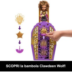 Scopri i segreti dietro le porte di Hauntlywood con questo set con guardaroba Segreti da Brivido I Misteri di Hauntlywood Include la bambola Clawdeen Wolf e abiti e accessori glamour