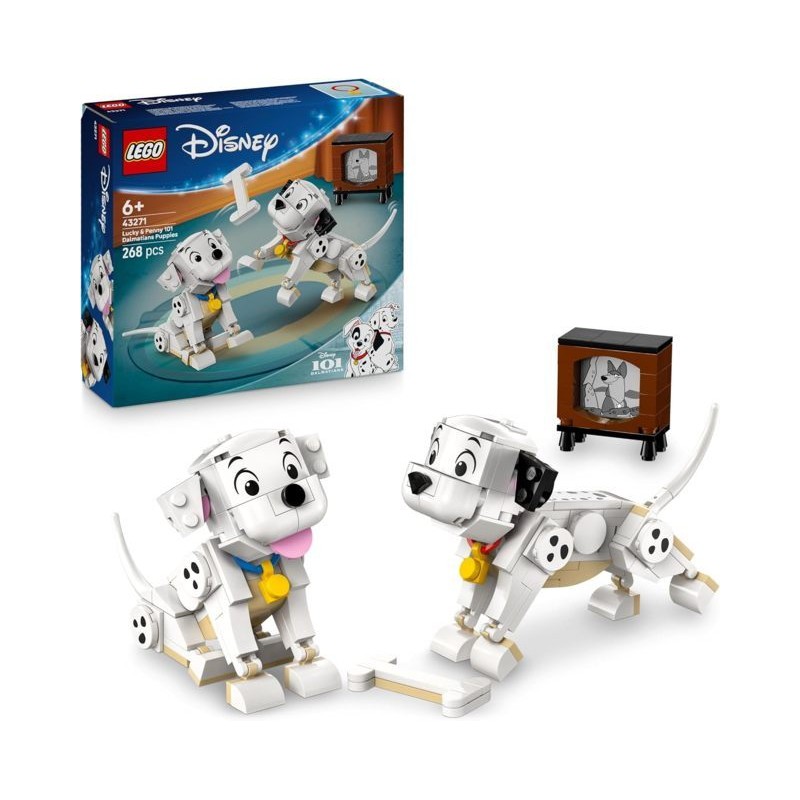 Cuccioli di dalmata ovunque un gioco creativo LEGO Disney che include i personaggi Pongo e Peggy tratti dal classico film Disney La carica dei cento e uno un osso in mattoncini e a una piccola TV con schermo