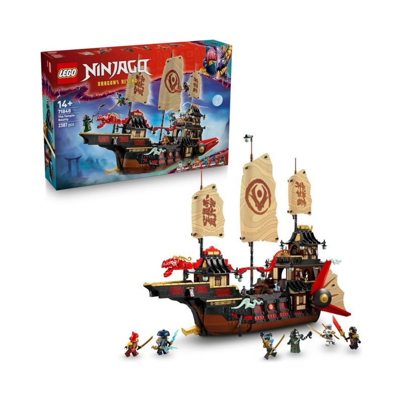 Grande modello di nave LEGO NINJAGO da costruire i giovani fan dei veicoli LEGO ameranno il set Il Bounty del Tempio un gioco per bambini e bambine da 14 anni con cui ricreare le scene della stagione 3 della serie TV NINJAGO La rivolta dei draghi