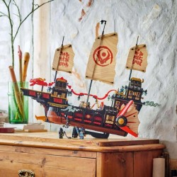 Modellino di nave giocattolo con espositore al termine delle battaglie i fan dei ninja possono utilizzare il supporto del set per esporre su uno scaffale o un comodino questo dettagliato giocattolo LEGO NINJAGO in mattoncini