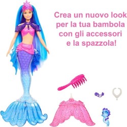 Con pinne intercambiabili 2 coroncine con gemme incastonate 2 collane e una spazzola i bambini possono cambiare il look di Barbie per qualsiasi avventura