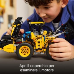 Avventure ingegneristiche per tutti i gusti apri la cover del motore della ruspa LEGO Technic per ispezionare i 3 ingranaggi girevoli proprio come nella versione reale del mezzo da cantiere Volvo