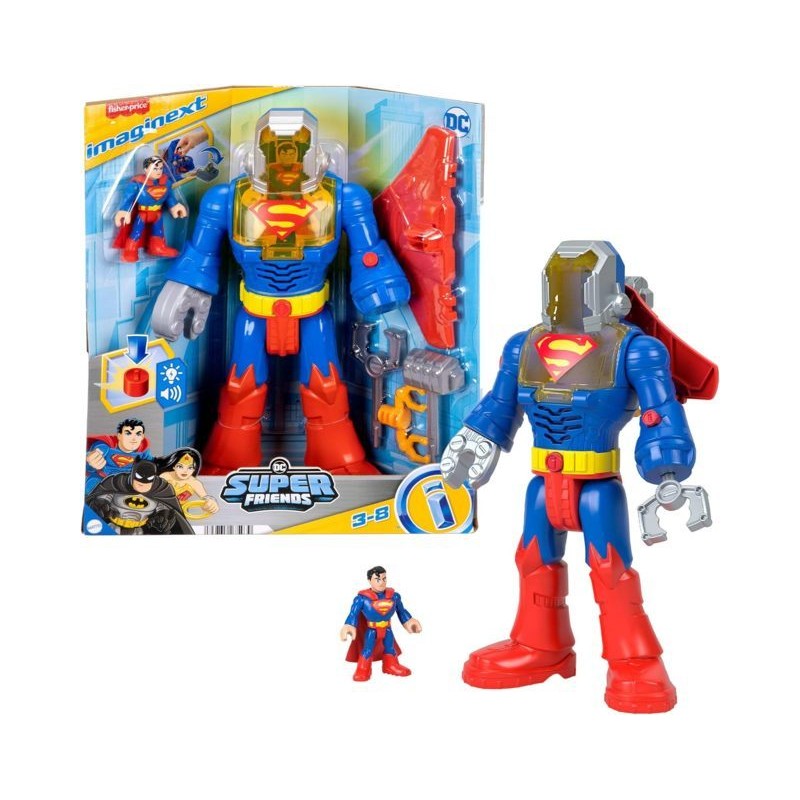 Il playset include una Corazza un personaggio di Superman snodato alto 7 6 cm e 4 accessori compatibili sia con il robot che con il personaggio