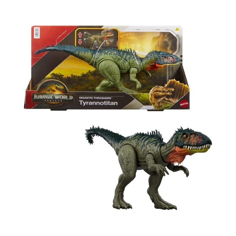Attacco furioso Il dinosauro Tirannotitano prende vita grazie a questo personaggio Gigantic Thrashers dotato di 2 feroci mosse d attacco ispirate a Jurassic World Rebirth