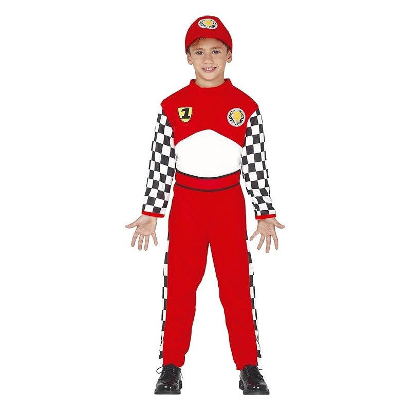 DISFRAZIO PER BAMBINI DA PILOTA DI CORSE Realizzato in poliestere con ritardante di fiamma Ideale per i piccoli amanti della velocità Colori vivaci rosso e bianco