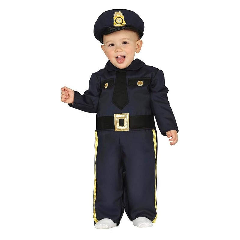 COSTUME DA POLIZIOTTO PER BEBE' Realizzato in poliestere e tessuto piano Include ritardante di fiamma per una maggiore sicurezza Colori blu e oro