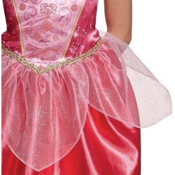 CARATTERISTICHE MERAVIGLIOSE L abito della Principessa Aurora è ricco di brillantini e luccichii con un corpetto dettagliato una gonna a peplo e un cameo del personaggio iconico