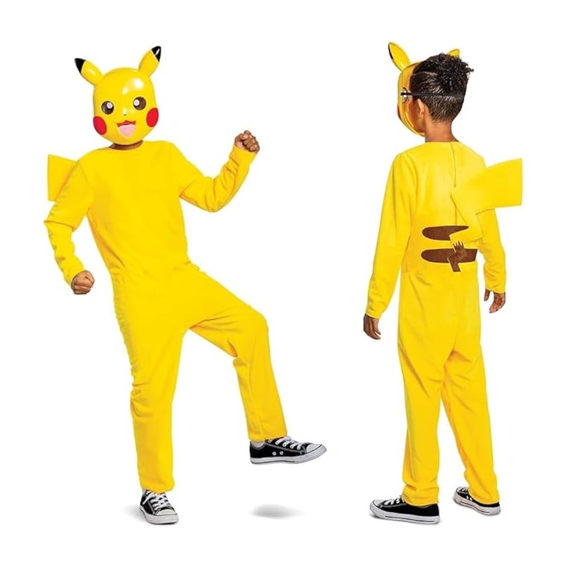 Abbraccia il fascino elettrizzante di Pikachu con il nostro costume classico Pikachu Questo iconico completo è composto da una tuta in velluto minky con coda e una semimaschera del personaggio con cinturino regolabile Canalizza la forza e il carisma di Pikachu rendendolo ideale per gli appassionati di Pokémon e i fan di tutte le età Che si tratti di feste in maschera Halloween o eventi cosplay questo costume da Pikachu è un aggiunta indispensabile alla tua collezione Distinguiti dalla massa e cattura l essenza di uno dei personaggi Pokémon più amati Preparati a intraprendere emozionanti avventure e mostra il tuo amore per Pikachu con questo classico costume di Halloween
