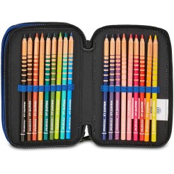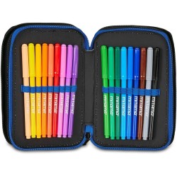 All interno troverai ben 45 pezzi di materiali scolastici tra cui 1 penna cancellabile blu 1 penna sfera rossa 18 pastelli a colori 4 0 esagonali 18 pennarelli superlava