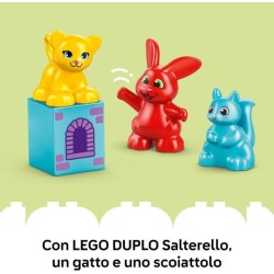 Ricco di funzionalità per lo sviluppo delle abilità sociali il set include una freccia girevole un tabellone 3 figure di animali LEGO DUPLO il coniglio Salterello e i suoi amici e 47 mattoncini oltre a pezzi per costruire un castello giocattolo