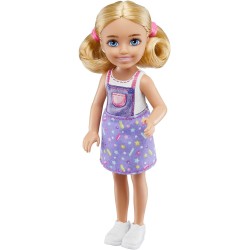 Entrambe le bambole sono pronte per giocare tutto il giorno con i loro outfit casual e alla moda come un abito a righe e grembiule rosa per Barbie e una gonna viola e un top stampato per la bambola Chelsea