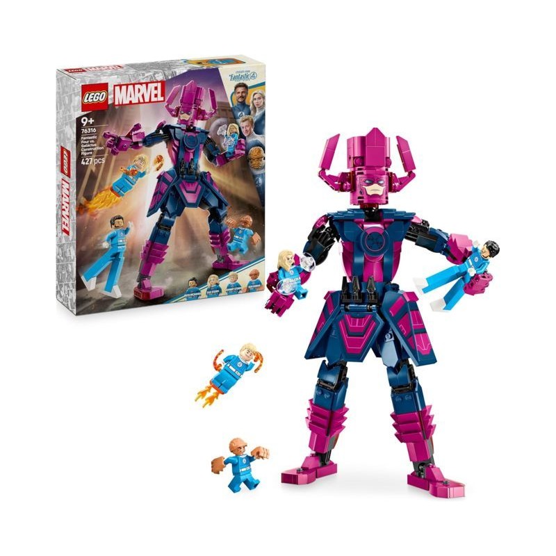 Il giocattolo dei Fantastici Quattro LEGO Marvel costruibile include 4 minifigure Mr Fantastic dotato di gambe estensibili la Torcia Umana con 2 blaster azionati a mano ed elementi fiamma ai piedi oltre a un supporto trasparente che gli permette di volare la Donna Invisibile con 2 scudi di forza e La Cosa con le sue mani grandi e potenti Una figura completamente snodabile dell iconico cattivo del film Galactus è alta 28 cm Questa figura snodabile e costruibile incoraggia infinite azioni mentre combatte i supereroi Per tanto divertimento digitale in più i costruttori possono ingrandire ruotare i modelli in 3D e tenere traccia dei progressi utilizzando la divertente e intuitiva app LEGO Builder Il set contiene 427 pezzi