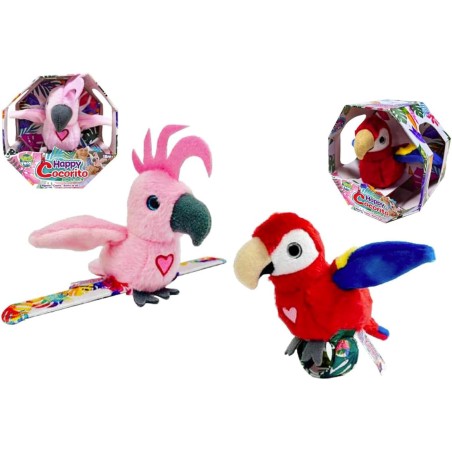 Vivi un divertimento interattivo come mai con Happy Cocorito Sempre con te Questi graziosi uccelli di peluche ripetono parole e suoni pronunciati cantano l allegra canzone degli Happy Cocorito Rockn Robin e sbattono le ali Grazie alla lavorazione di alta qualità in morbido poliestere sono il compagno di polso ideale per i bambini