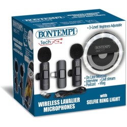 CONFEZIONE 2 MICROFONI WIRELESS LAVALIER CON ANELLO LUMINOSO DA SELFIE