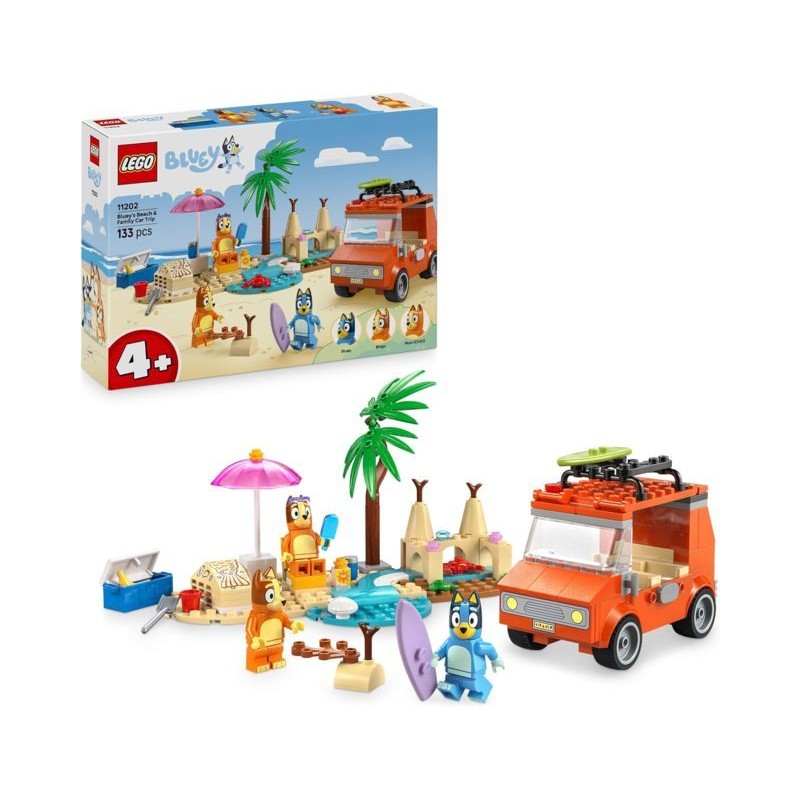 Un gioco didattico e interattivo il set contiene 3 minifigure dei personaggi di Bluey Bingo e Chilli la mamma di Bluey e un auto LEGO con tetto apribile tutto il necessario per dar vita ad attività pratiche per una piacevole giornata in spiaggia