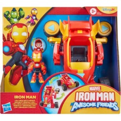 DESIGN ISPIRATO ALLA SERIE l armatura Mech e l auto da corsa giocattolo dell action figure snodabile del supereroe Iron Man presenta design e decorazioni ispirati alla serie Iron Man e i suoi fantastici amici su Disney Jr