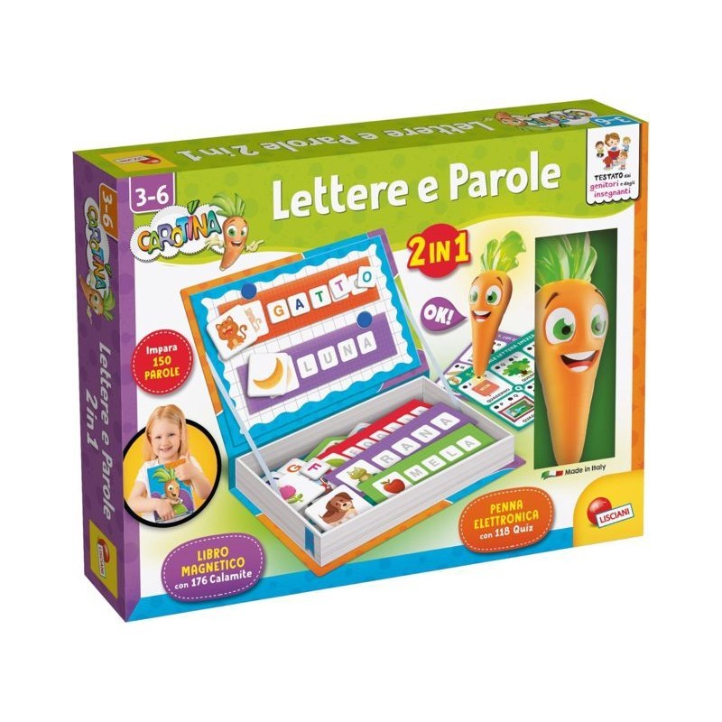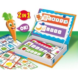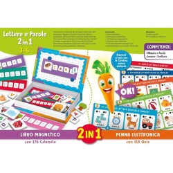 Una speciale combinazione di due grandi classici educativi Una speciale scatola con un ricco kit di giochi magnetici e la penna parlante e luminosa Tante attività per scoprire lettere e parole