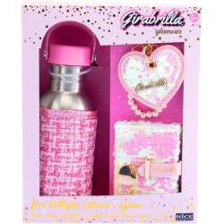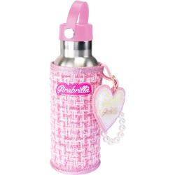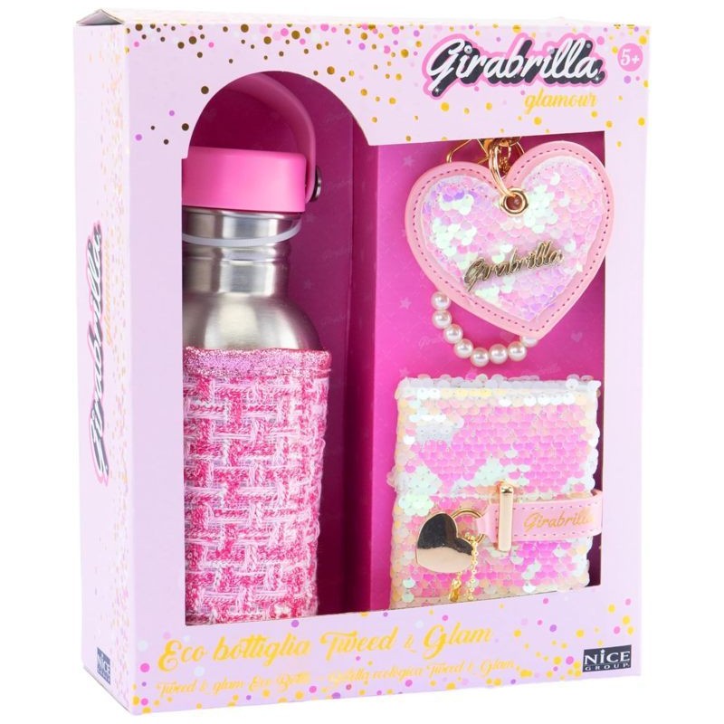 GIRABRILLA TWEED SET 1 confezione contenente un agenda segreta portatile 1 borraccia ecologica 500 ml in acciaio inossidabile con un rivestimento rimovibile in tessuto tweed e 1 ciondolo a forma di Cuore in paillettes reversibili