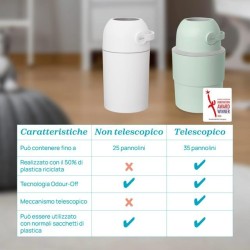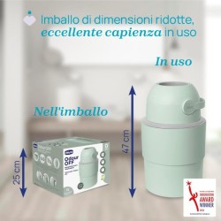 PIEGHEVOLE E COMPATTO il mangiapannolini è pieghevole e ancora più compatto Poco ingombrante può contenere fino a 35 pannollini a seconda delle dimensioni dei pannolini il valore può variare leggermente