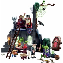 Divertimento inquietante il playset include una rovina di castello tre personaggi una bara pipistrelli ragni e molti altri accessori paurosi Perfetto per giochi di ruolo fantasiosi e avvincenti incentrati su spettri e avventure