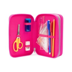 Astuccio 3 zip con corredo Barbie Dimensione 13 x 19 x 6 5 cm Contenuto 18 pz matite colorate 18 pz pennarelli 1 pz penna 1 pz penna a sfera rossa 1 pz matita 1 pz gomma 1 pz