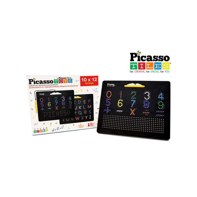 Il tavolo da disegno di grandi dimensioni 12 10 pollici viene fornito con perline magnetizzate nell involucro autonomo che consente alla penna stilo inclusa di connettersi rapidamente raccogliere e portare in superficie delle perline magnetiche con un clic udibile per richiamare apprendimento visivo all azione per imparare a scrivere lettere maiuscole su un lato del tabellone e numeri sull altro lato del tavolo da disegno oltre a un area designata per disegnare o scrivere liberamente
