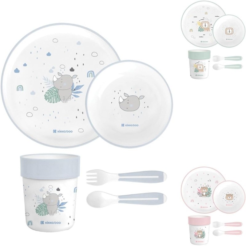 Set di stoviglie per bambini 5 pezzi per bambini da 6 mesi in plastica con tazza piatto forchetta cucchiaio e scodella tazza 180 ml piatto 18 cm facile da pulire con simpatico motivo di animali aiuta il bambino ad esercitarsi a mangiare in modo indipendente ideale anche per la pappa