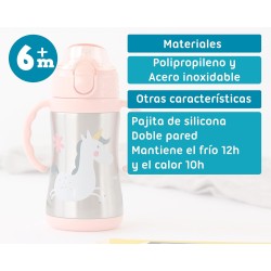 MECCANISMO A BOTTONE CHE FACILITA L APERTURA DEL CAPPUCCIO MANTENIANDOLO PULITO E SICURO La cannuccia in silicone integrata aiuta i bambini a imparare a bere da soli