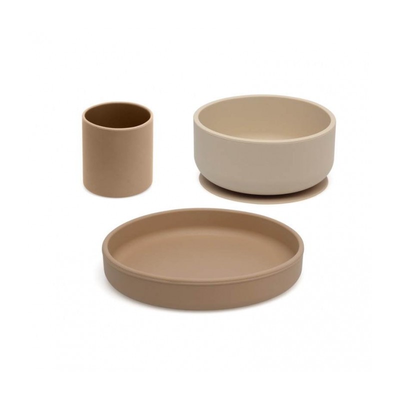 Include una ciotola un piatto e una tazza realizzati in morbido silicone alimentare di alta qualità il tutto in colori armonizzati che attirano l attenzione dei bambini Ogni pezzo è progettato per essere facile da maneggiare per le mani dei più piccoli promuovendo l indipendenza e la sicurezza durante i pasti