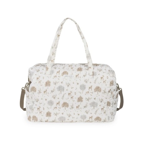 Scopri la perfetta combinazione di stile e praticità con la borsa XL Nara di Pasito a Pasito realizzata in 100 cotone con una delicata stampa di cervi e alberi in tonalità neutre Il trattamento impermeabile la rende resistente all acqua garantendo protezione e durata nell uso quotidiano Il suo design moderno e spazioso la rende ideale per i genitori che cercano un accessorio versatile per la vita di tutti i giorni Grazie alla sua grande capacità e ai numerosi scomparti permette di mantenere tutto in ordine durante le uscite o i viaggi con il bambino Dispone di diverse tasche interne per una migliore organizzazione e offre un doppio manico superiore per un trasporto comodo a mano oltre a una tracolla regolabile e removibile per indossarla a spalla o a tracolla E' realizzata con materiali di alta qualità privi di coloranti azoici ftalati e altre sostanze nocive per la salute