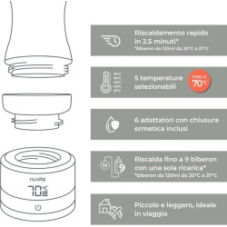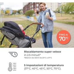 Riscaldamento rapido in soli 2 5 minuti ovunque ti trovi Scalda 120 ml di latte da 20 C a 37 C in appena 2 5 minuti il più veloce della sua categoria Perfetto per poppate notturne viaggi o uscite fuori casa garantendo sempre la temperatura ideale per il tuo bambino