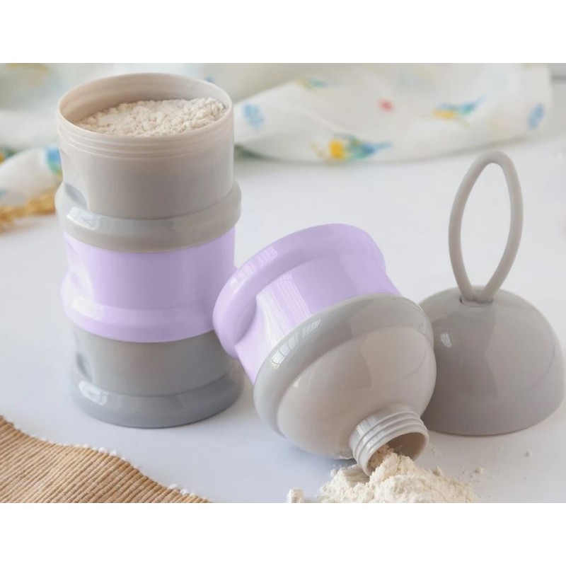 Con una chiusura a vite tra scomparti l ultimo è anche chiuso con un imbuto che permetterà al latte in polvere di essere versato direttamente in bottiglia comodamente e rapidamente Puoi anche usare uno dei reparti per portare il ciuccio del tuo bambino